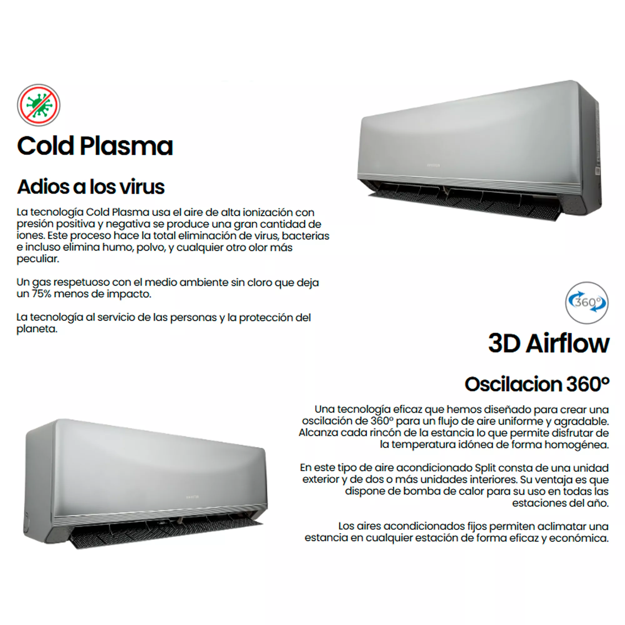 Otras Características: Filtro de alta intensidad / iFeel Technology / Bomba de calor / Cold plasma