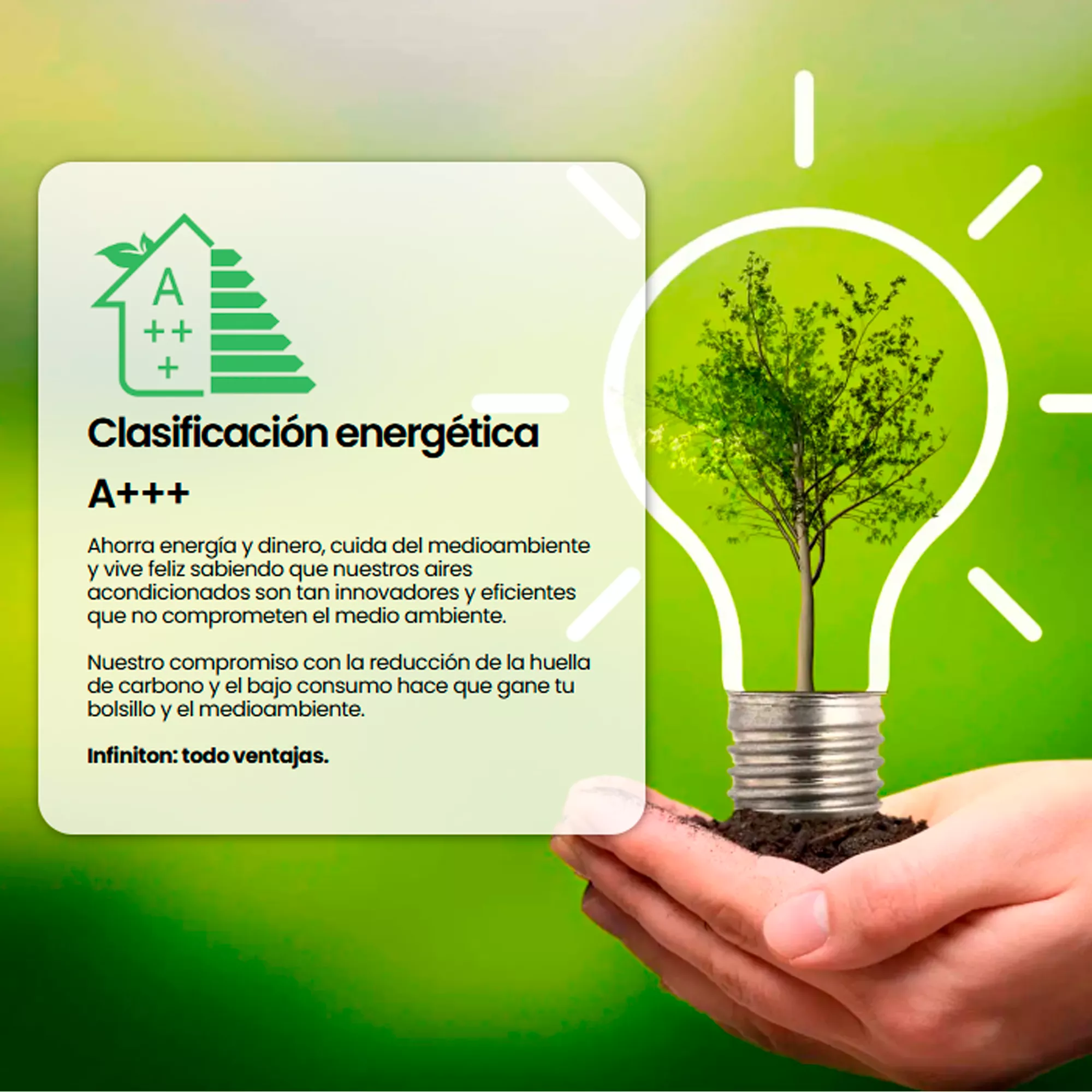 Ahorra energía y dinero, cuida del medioambiente y vive feliz sabiendo que nuestros aires acondicionados son tan innovadores y eficientes que no comprometen el medio ambiente.