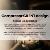 Este nuevo compresor que amortigua el ruido gracias a su diseño interior de elementos. Sus piezas tienen aislantes específicos para reducir los ruidos y las vibraciones. Esto permite reducir considerablemente los decibelios, hasta 40 dB, un 25% menos en producción de ruido. Además, ofrece un ahorro del 29% en electricidad, se fuerza menos y su vida es más prolongada. Silencioso y eficiente.
