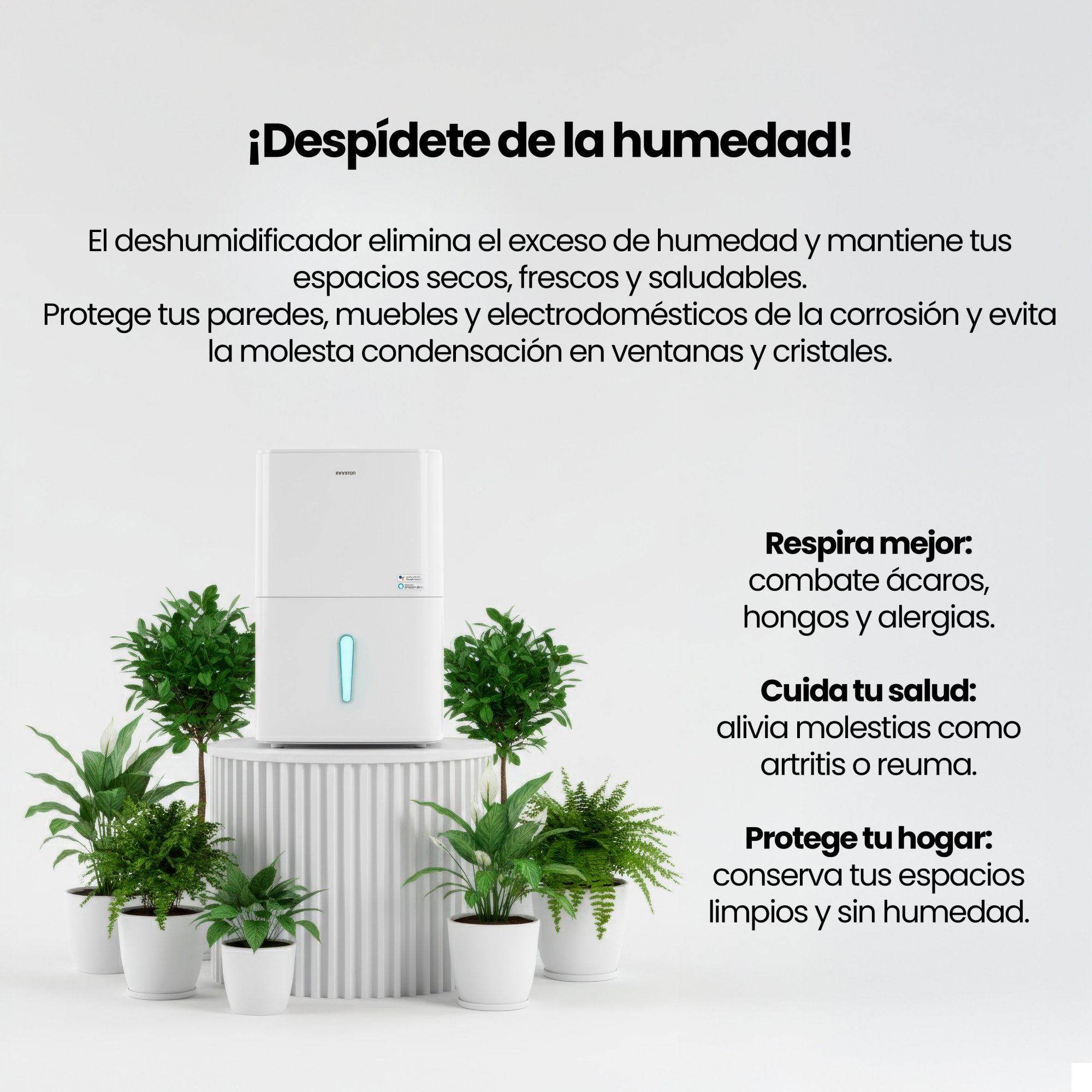 Un deshumidificador es un dispositivo que tiene la habilidad de condensar la humedad evitando que se impregne en las paredes y otras superficies. Ayudan a evitar la corrosión de superficies metálicas, así como de diferentes aparatos eléctricos. Reduce la condensación del agua que puede producirse en los cristales, jarrones, ventanas, etc.
