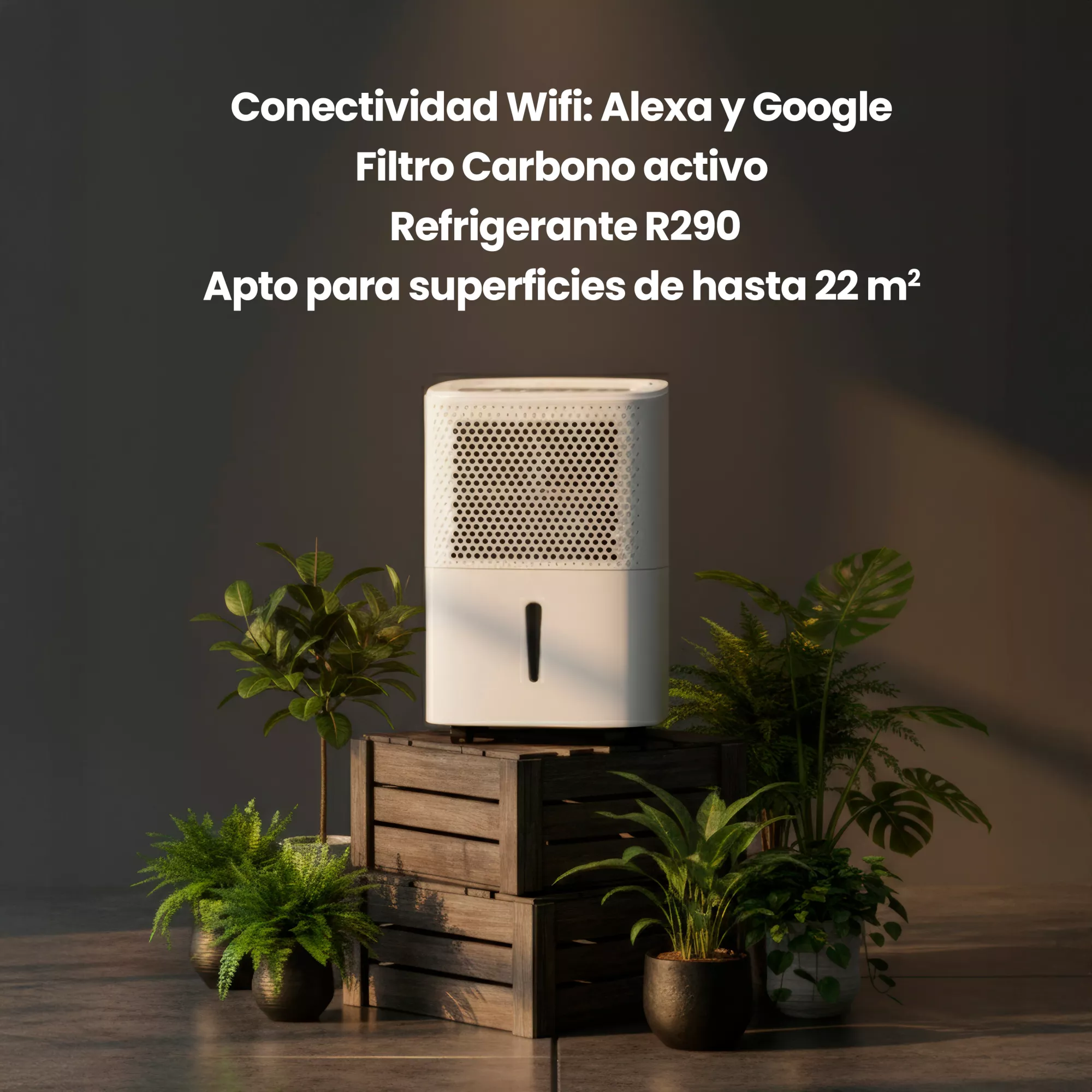 Deshumifica el aire de tu estancia con el Infiniton DHM-W20L, se caracteriza por tener compatibilidad con Alexa y Google gracias a su conexión Wifi con lo que conseguirás tener la tranquilidad de estar libre de virus y bacterias en tu hogar.