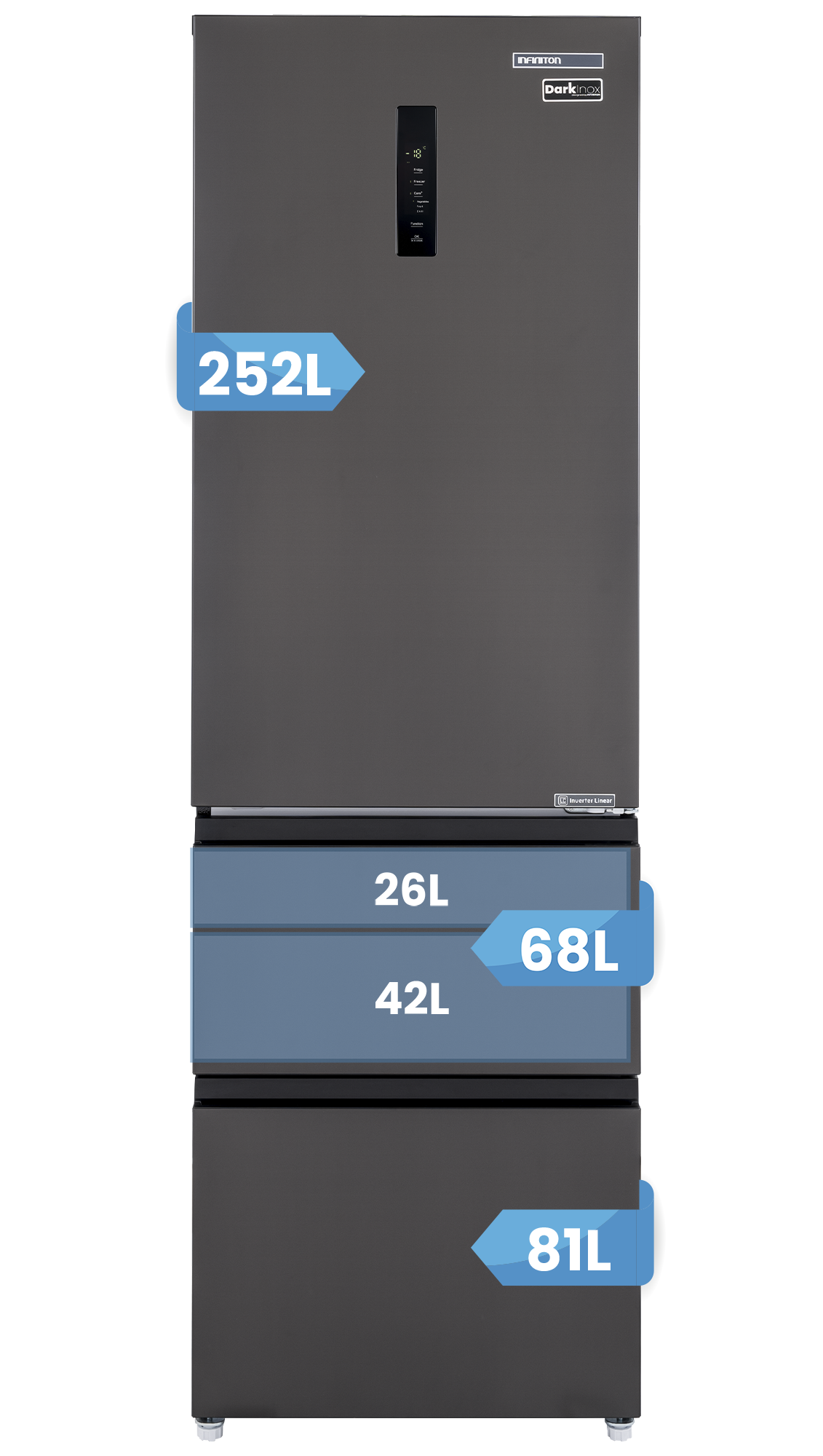 El frigorífico combi francés Infiniton FRD-401T91DEV se caracteriza por tener una capacidad de 401 Litros. Gracias a su clasificación energética E percibirás un importante ahorro energético en tu factura de la luz.