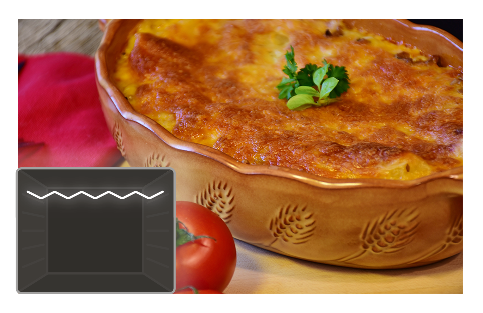 Ideal para gratinar de forma más rápida o para preparar alimentos de gran superficie.