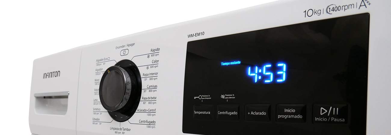 La lavadora Infiniton WM-EM10 dispone de una pantalla con luz LED de color azul hielo. Incluye el programa DIY, ajustes avanzados que te harán programar “tu configuración favorita” para con un solo botón hacer funcionar tu lavadora en tu programa favorito y el mas adecuado para tus prendas.Nadie mejor que tú, para conocer que necesita tu ropa, y desde INFINITON te lo ponemos fácil para configurarlo “una sola vez.