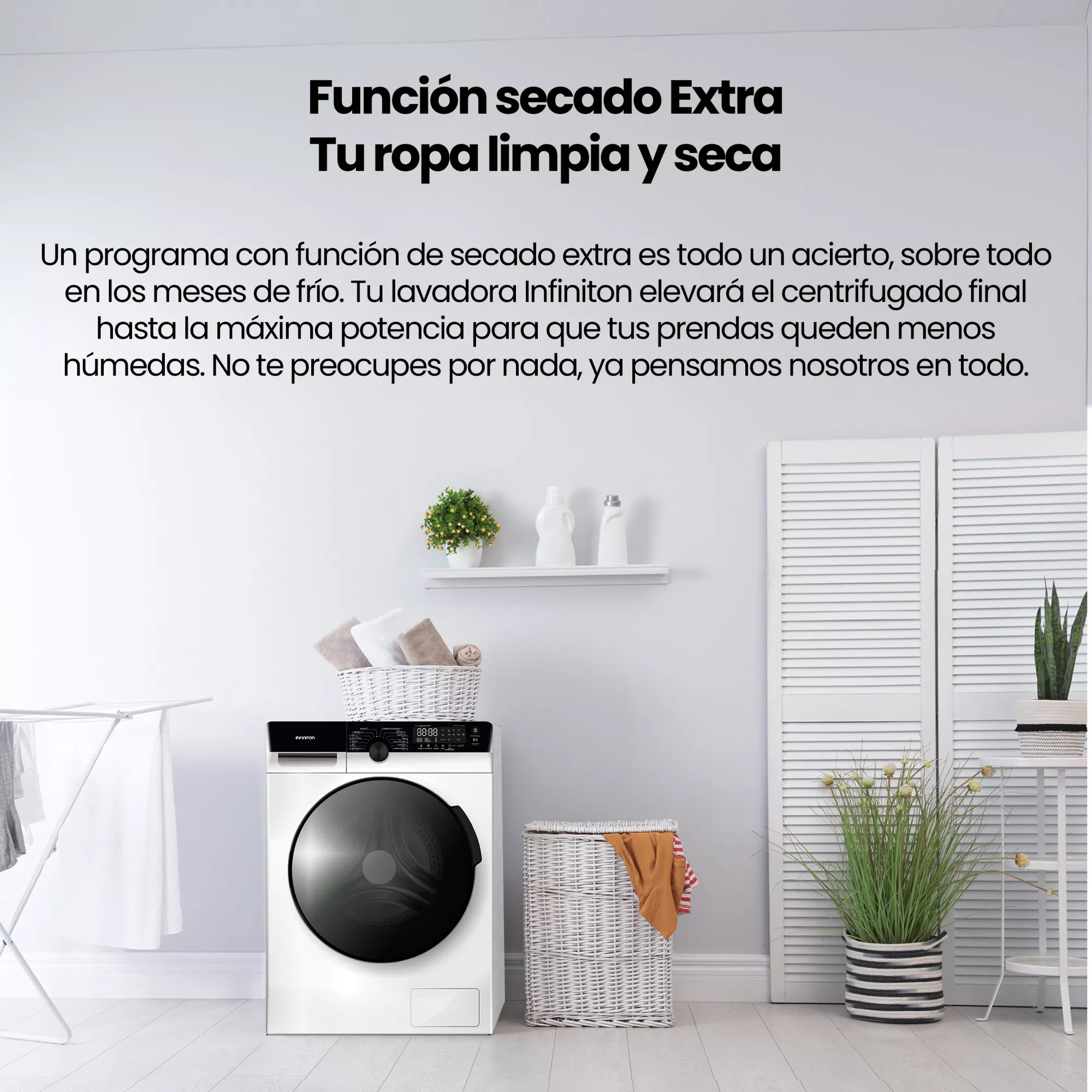 Gracias a su función predeterminada, la lavaseca Infiniton completa el ciclo de lavado en tan