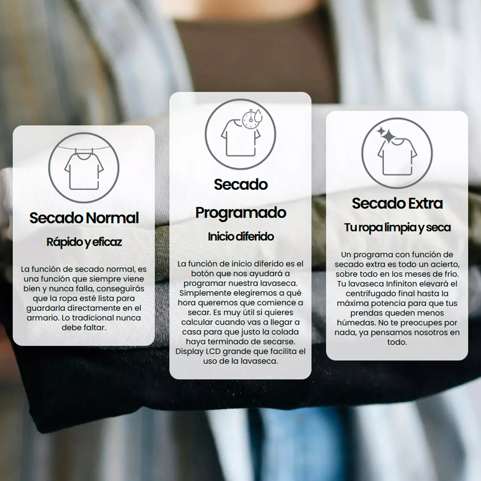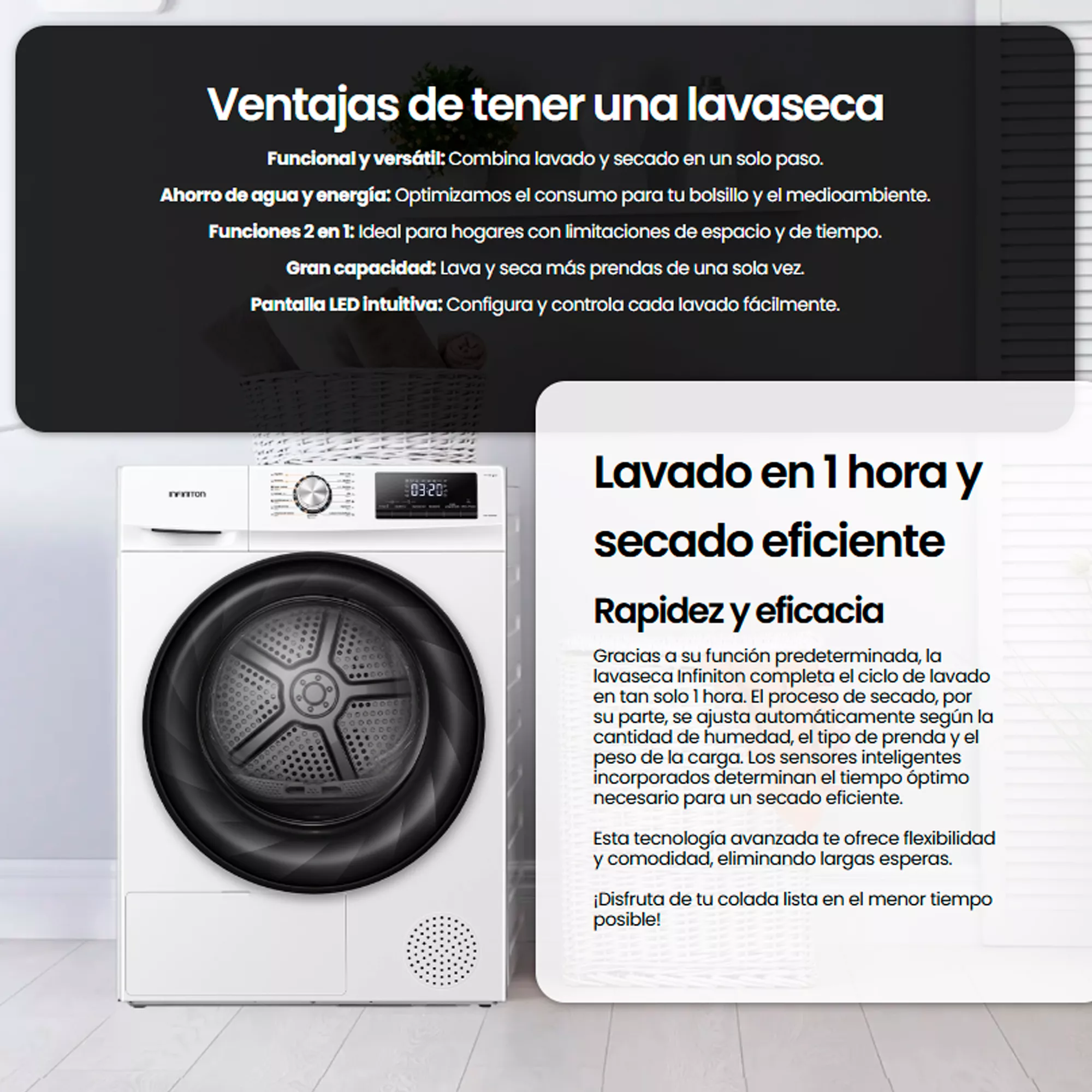 Tenemos la solución perfecta. Gracias a la lavaseca de Infiniton, disfrutarás de la comodidad y eficiencia de una lavadora y secadora en un solo electrodoméstico.