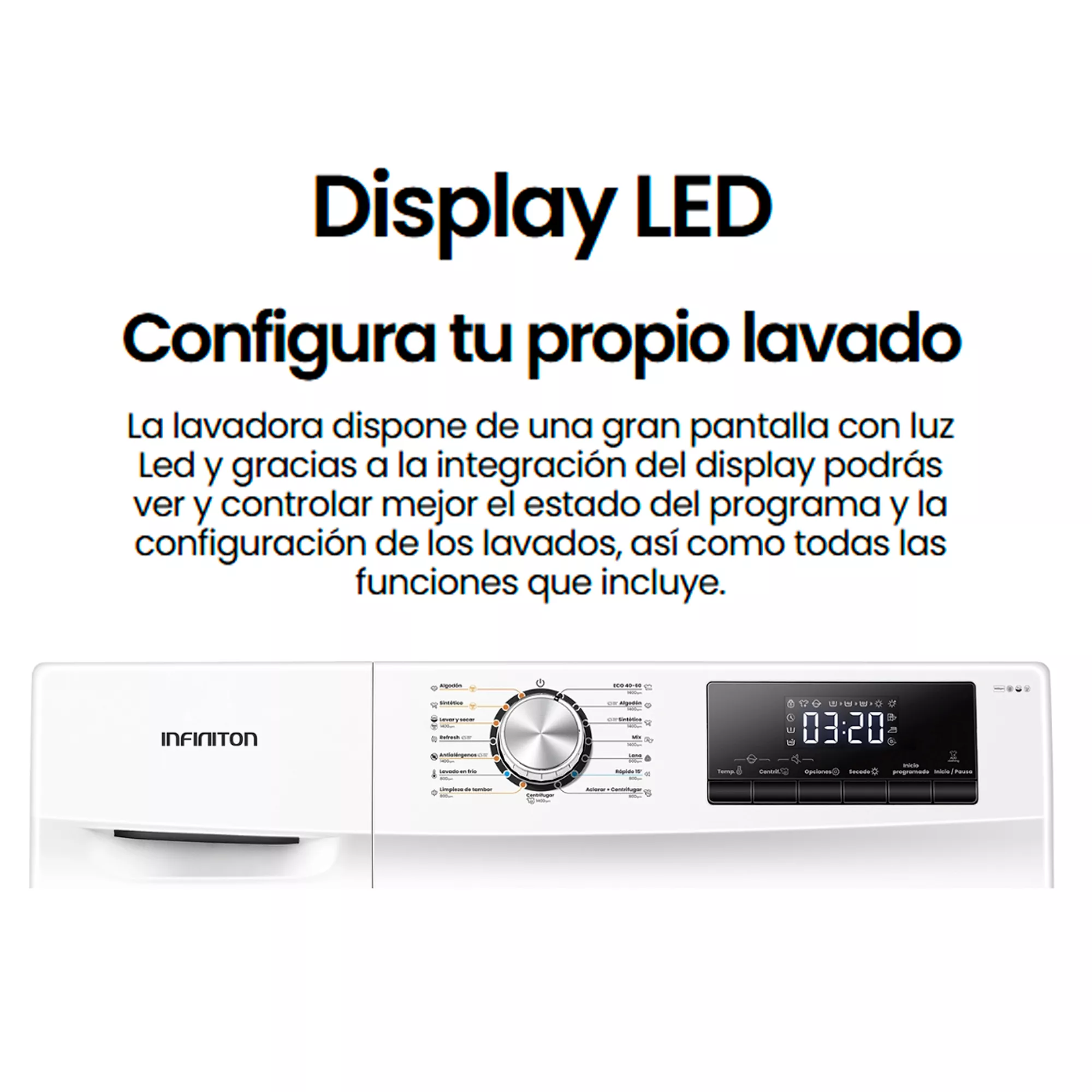 Pantalla LED intuitiva: Configura y controla cada lavado fácilmente.