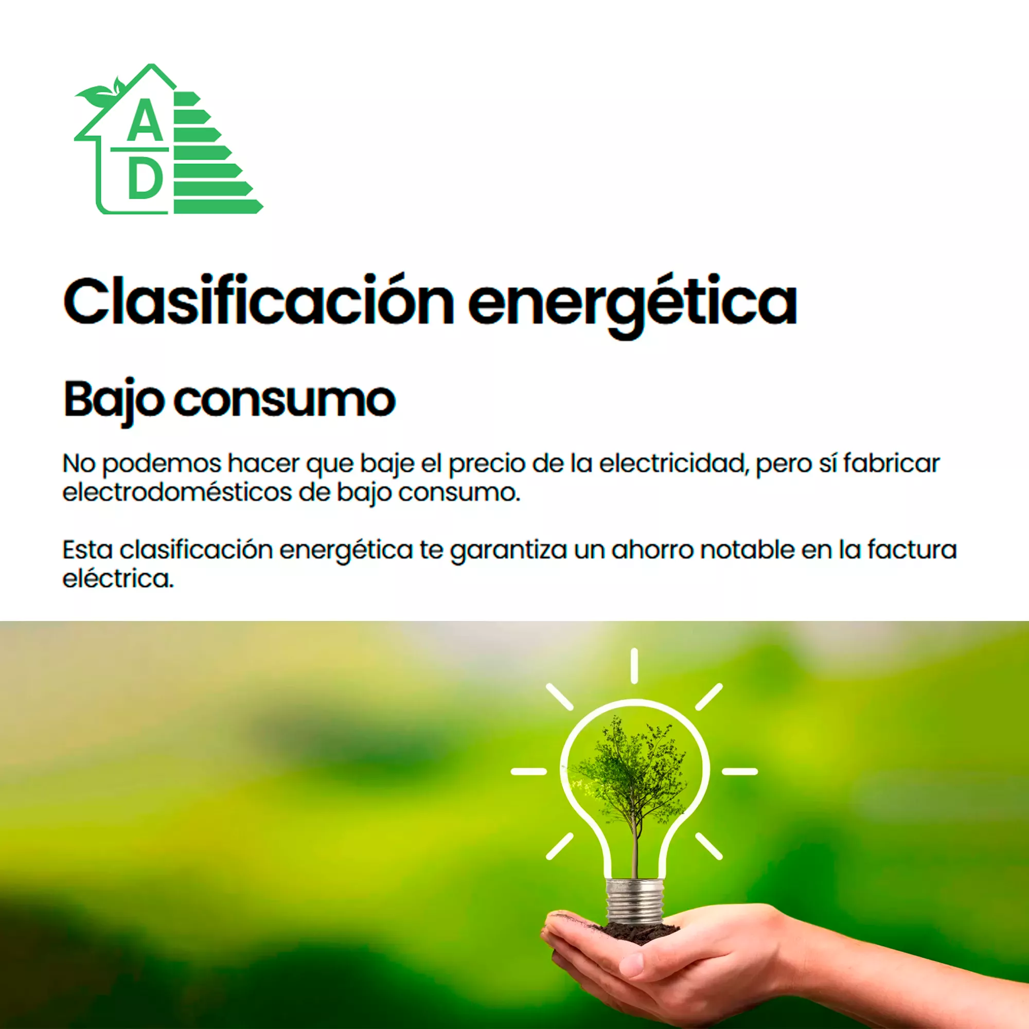 Este potente motor de bajo consumo logra que ahorres un 29% en electricidad generando además un 25% menos de ruido. No es magia, es tecnología.
