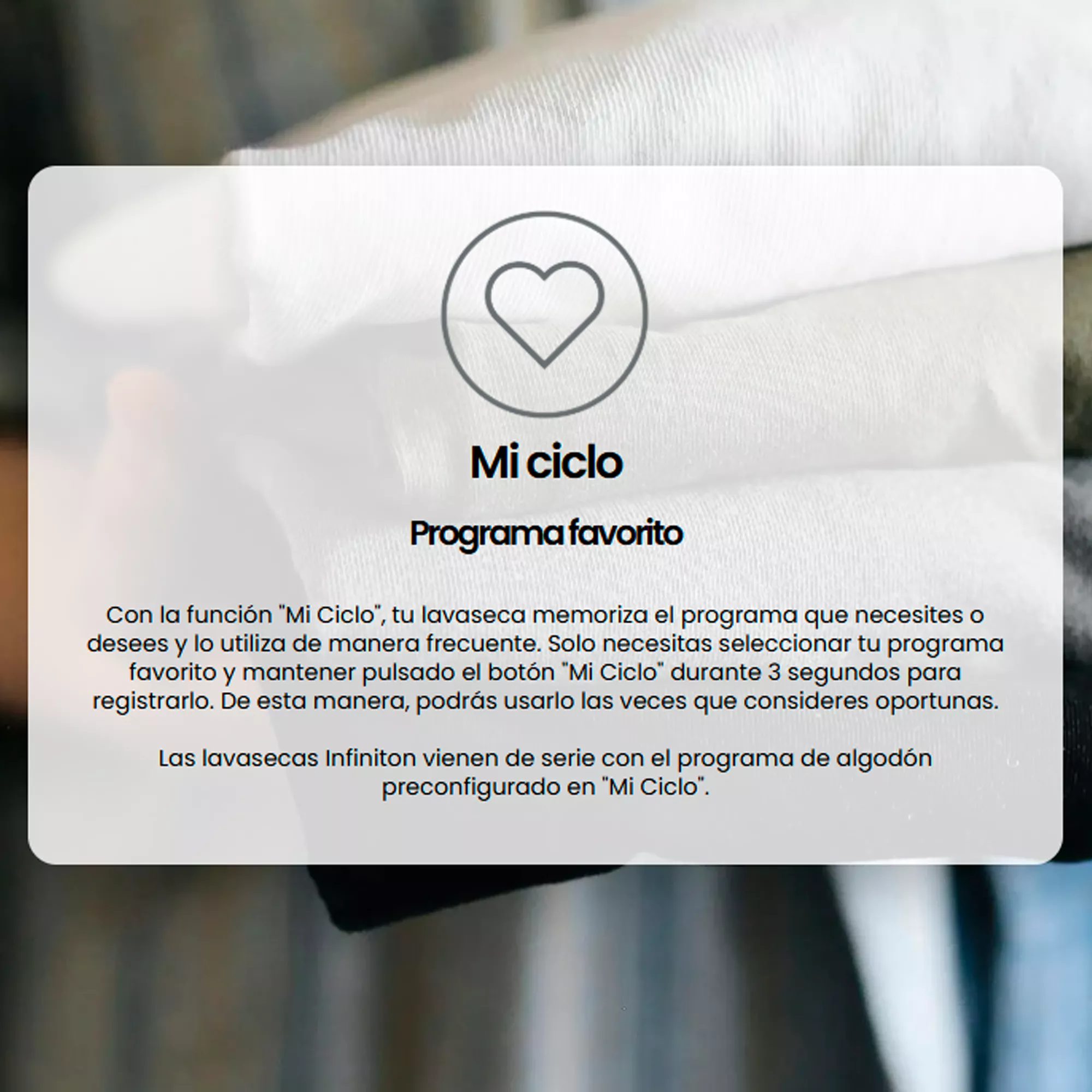 Las lavasecas Infiniton vienen de serie con el programa de algodón preconfigurado en "Mi Ciclo".