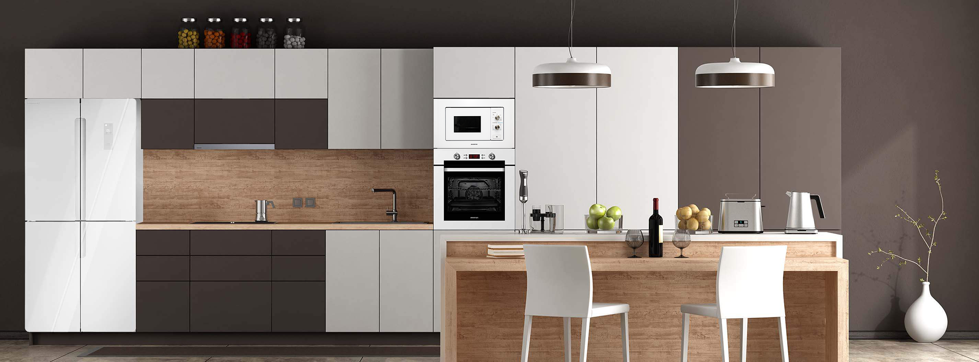 Disfruta del combinado de blanco acrílico tanto en tu microondas Infiniton con el horno, teniendo los dos el mismo acabado darán un toque de elegancia y distinción a tu cocina.