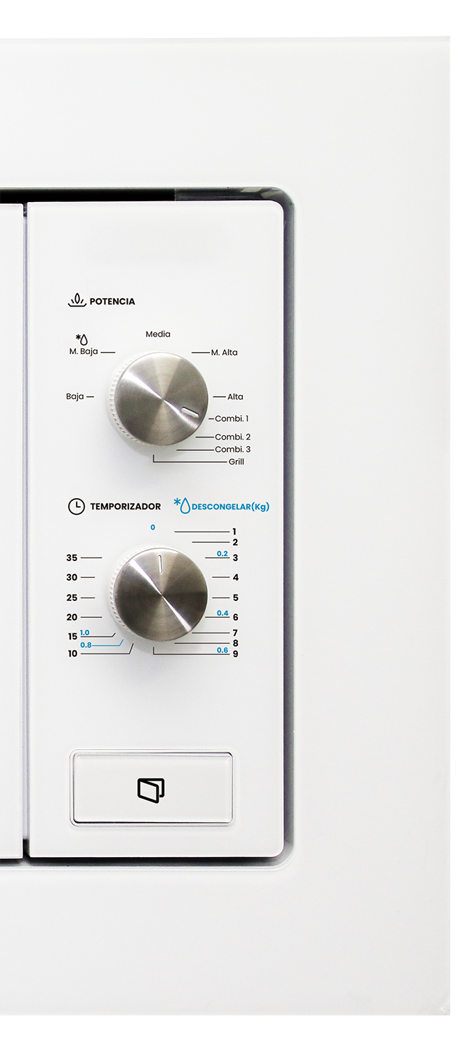 Siempre estamos pensando en tu confort y en brindarte la máxima comodidad posible, es por esto, que en nuestros microondas te ofrecemos el botón escamoteable, para así, lograr una configuración más fácil además de un toque de elegancia con el acabado inox.