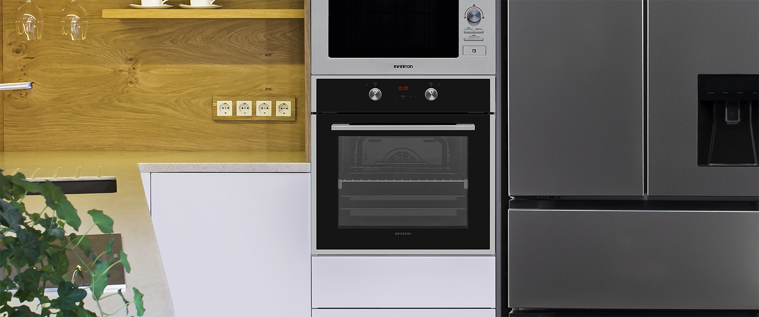 Disfruta del combinado inox tanto en tu microondas Infiniton con el horno, teniendo los dos el mismo acabado darán un toque de elegancia y distinción a tu cocina.