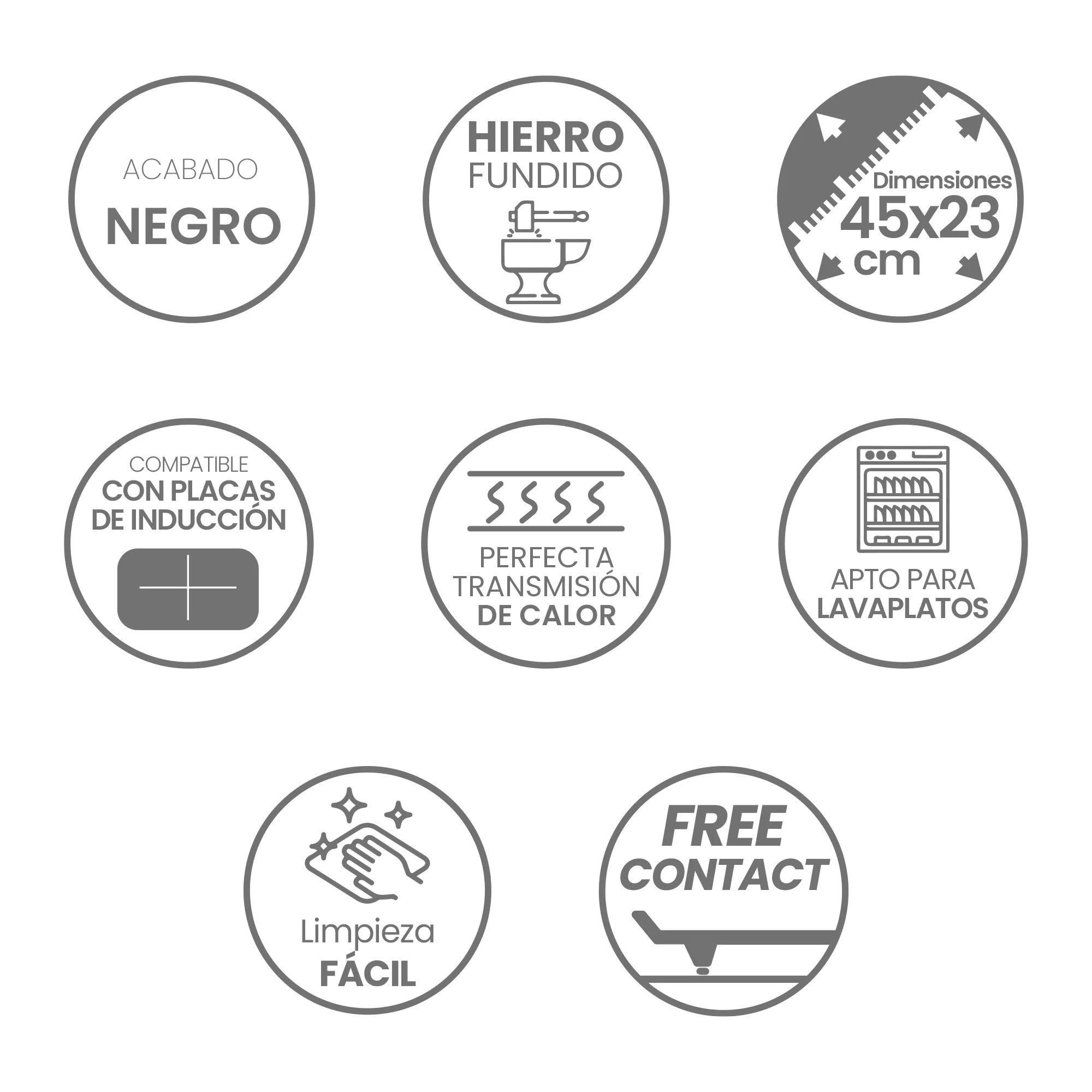 La plancha grill para inducción Infiniton GRILL A44i es el accesorio perfecto para cocinar con comodidad. Fabricada en hierro fundido, reparte el calor de forma uniforme y garantiza resultados profesionales en carnes, pescados y verduras.