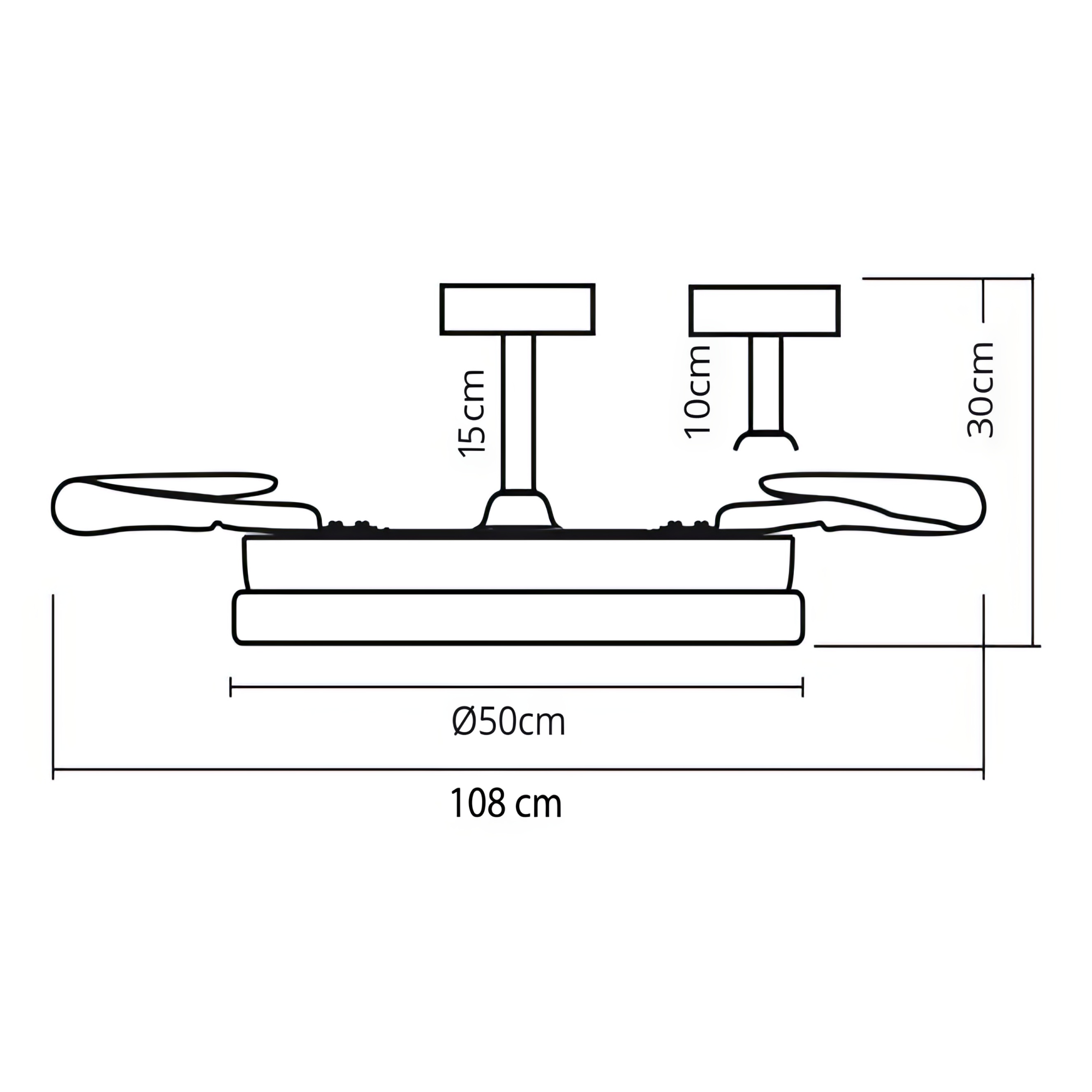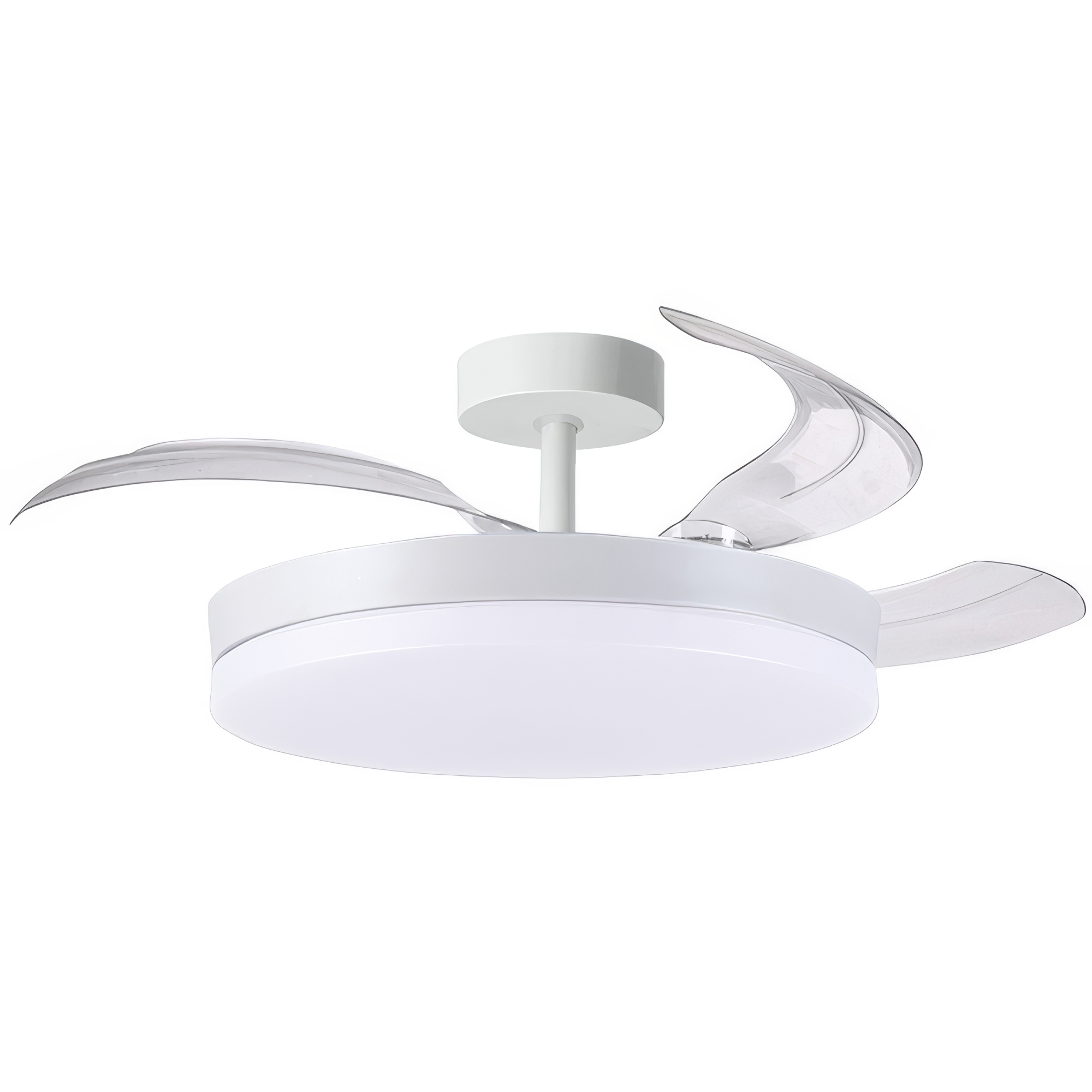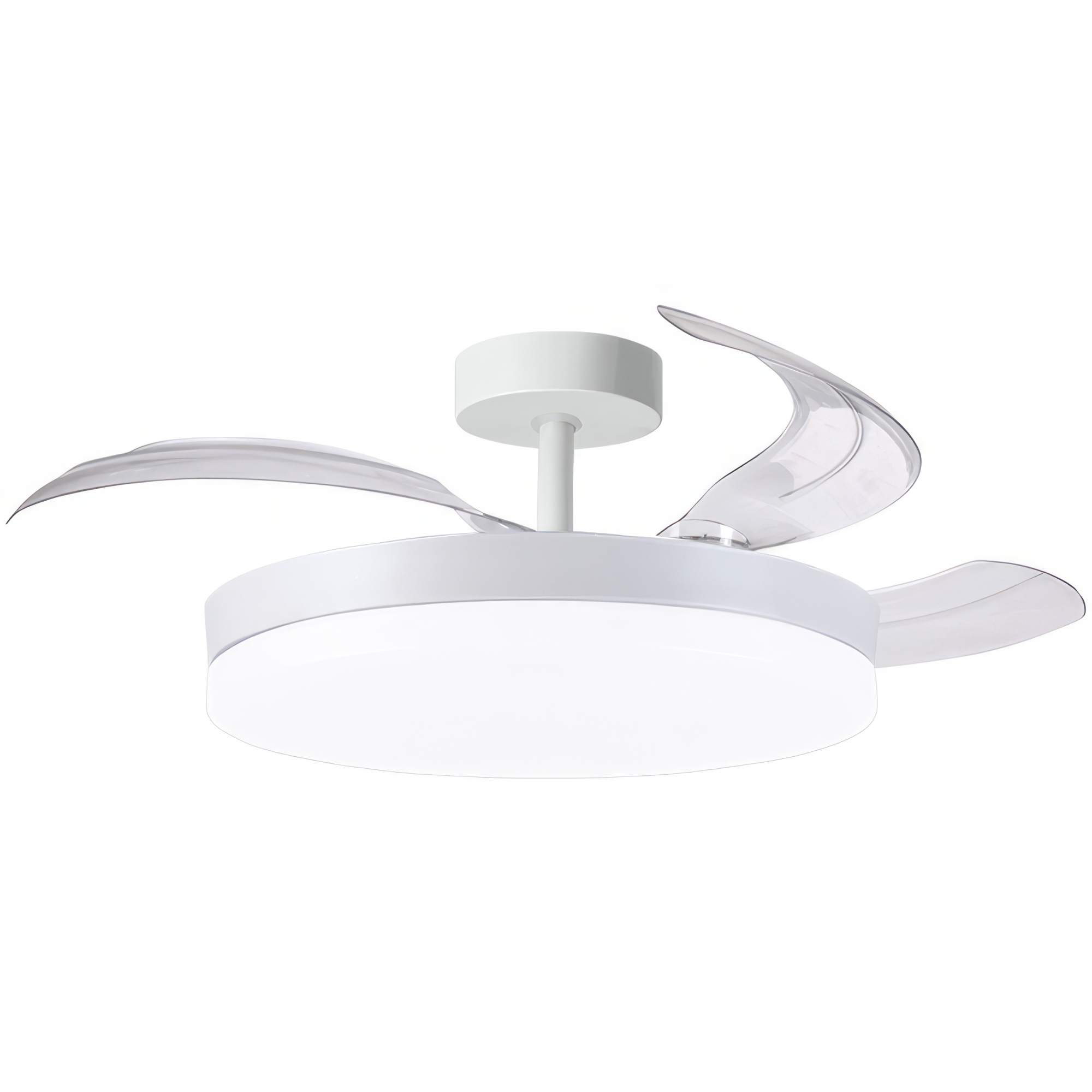 Ventilador con luz, 3 aspas retráctiles transparentes y motor DC con 6 velocidades. Tecnología LED con potencia de 72 watios, 6480 lúmenes y 3 tonos de luz blanca 3000|4000|6000K.